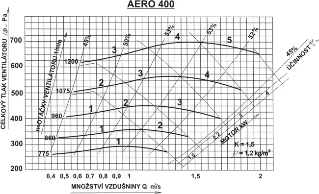 Výkonové oblasti ventilátoru AERO 400