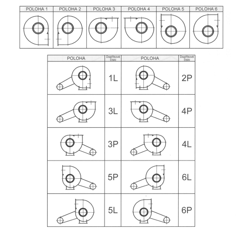 Poloha spirální skříně se určuje při pohledu ze strany sání