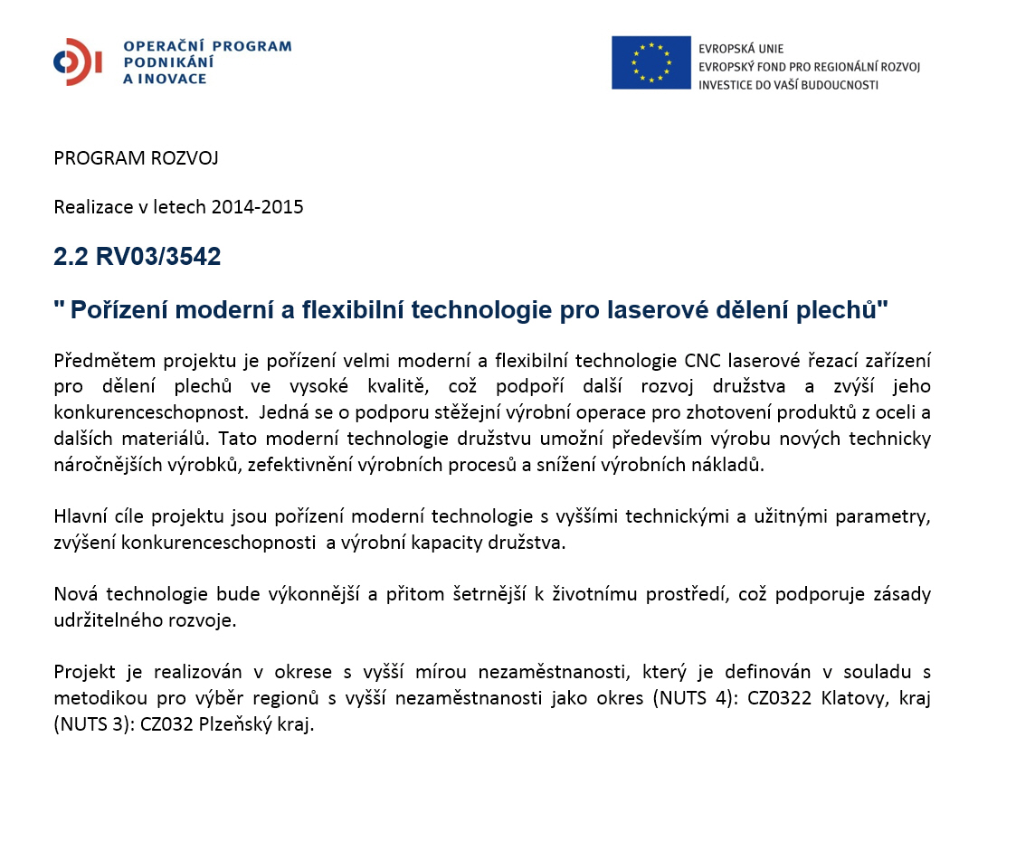 Pořízení moderní a flexibilní technologie pro laserové dělení plechů