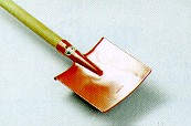 Lisované z ocelového plechu s násadou 750 mm opatřenou voskovým nátěrem, povrchová úprava práškovou barvou bez olova a cadmia.