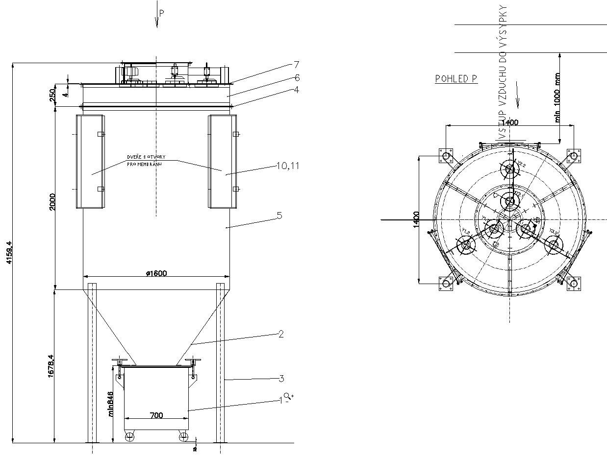 (bez odsun.dopravníku a turniketu pod odlučovačem)