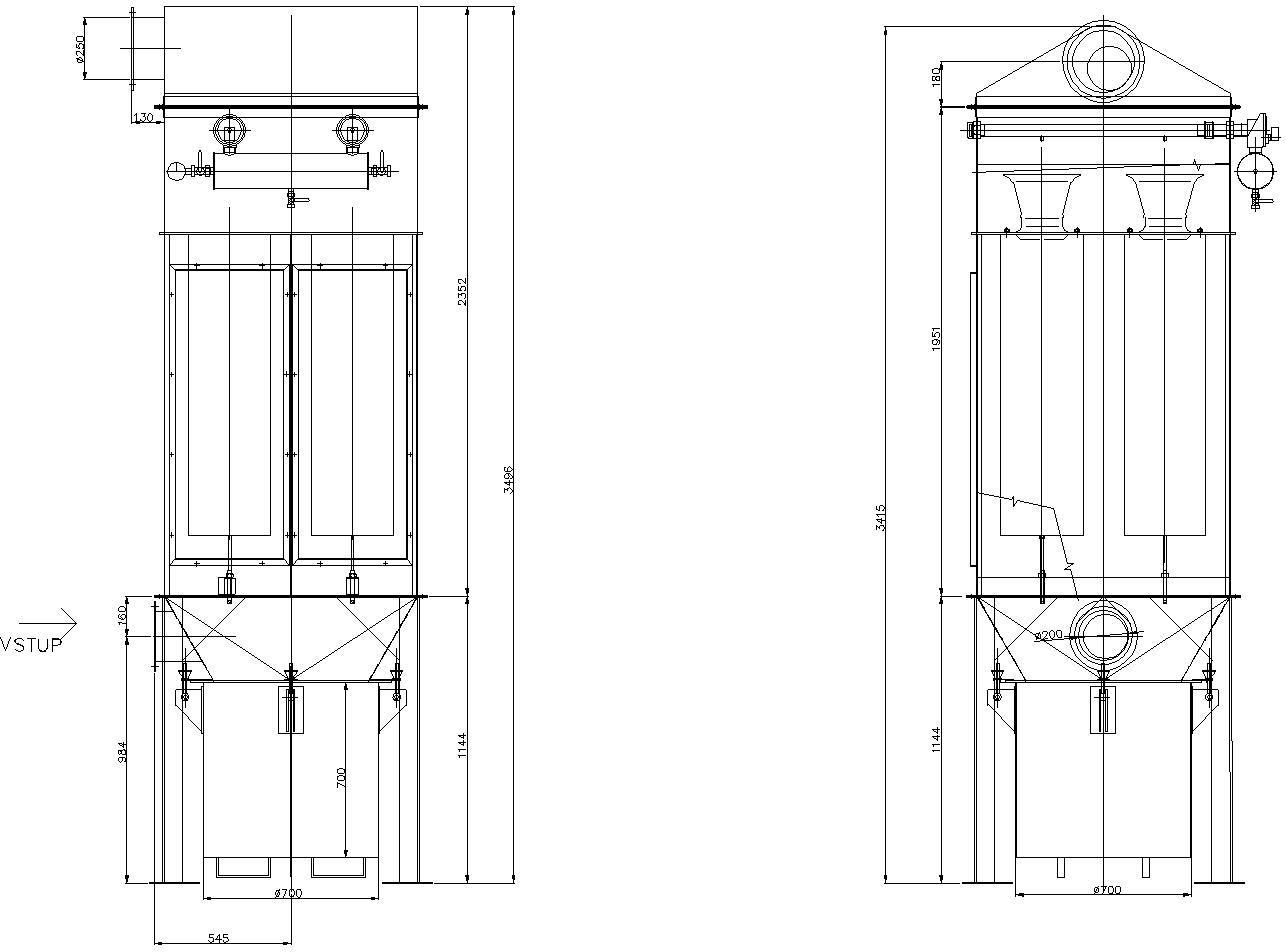 Výstupní koncentrace pevných látek na výstupu z filtru se pohybuje dle zatížení mezi 1-10mg/m3.