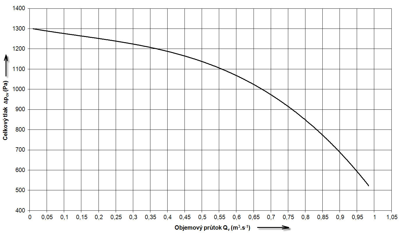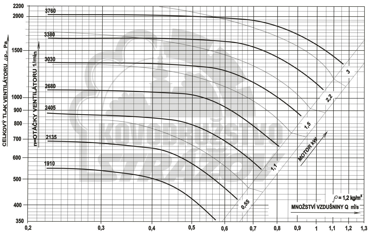 Výkonové oblasti ventilátoru RSS 315 na přímo - motor 1,5 kW, otáčky 2860 1/min