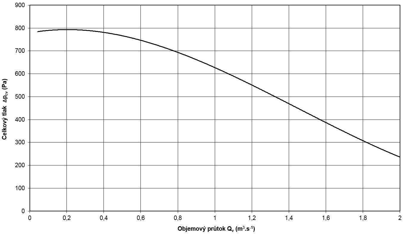 Výkonové oblasti ventilátoru RSS 500 na přímo - motor 2,2 kW, otáčky 1420 1/min