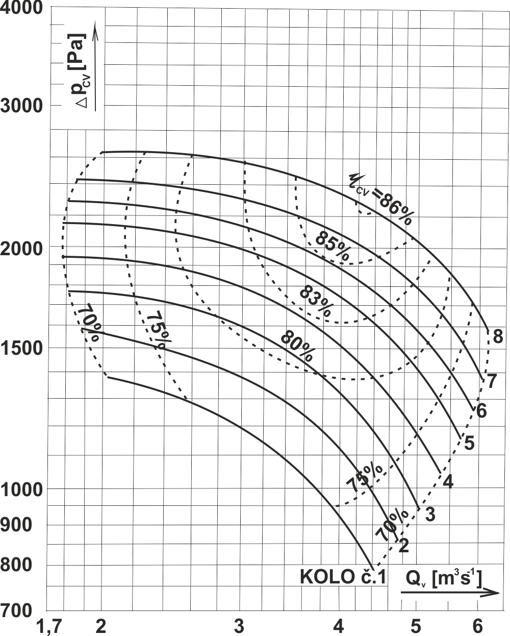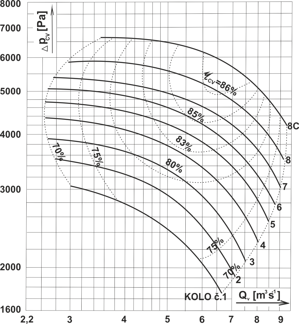 Výkonové oblasti ventilátoru RVI 1000